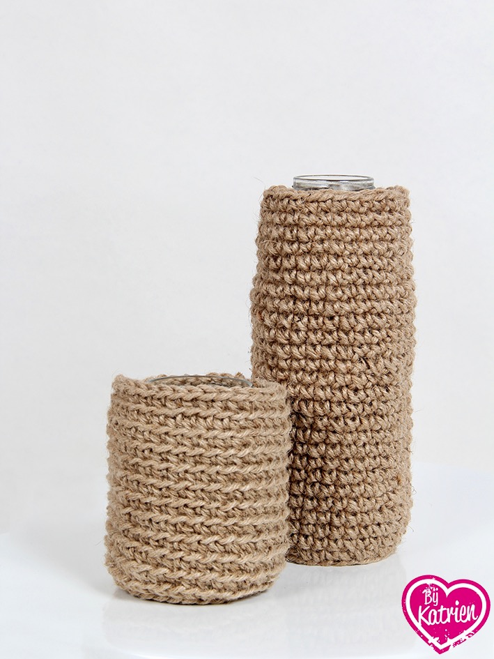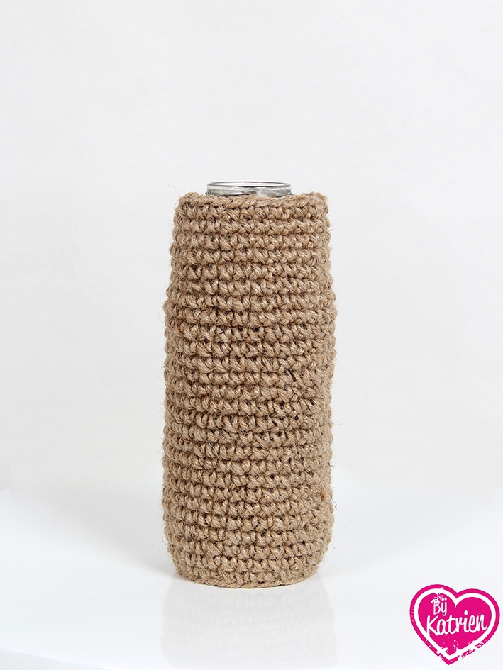 Verander een lege fles in en leuke vaas met dit jute “jasje”.