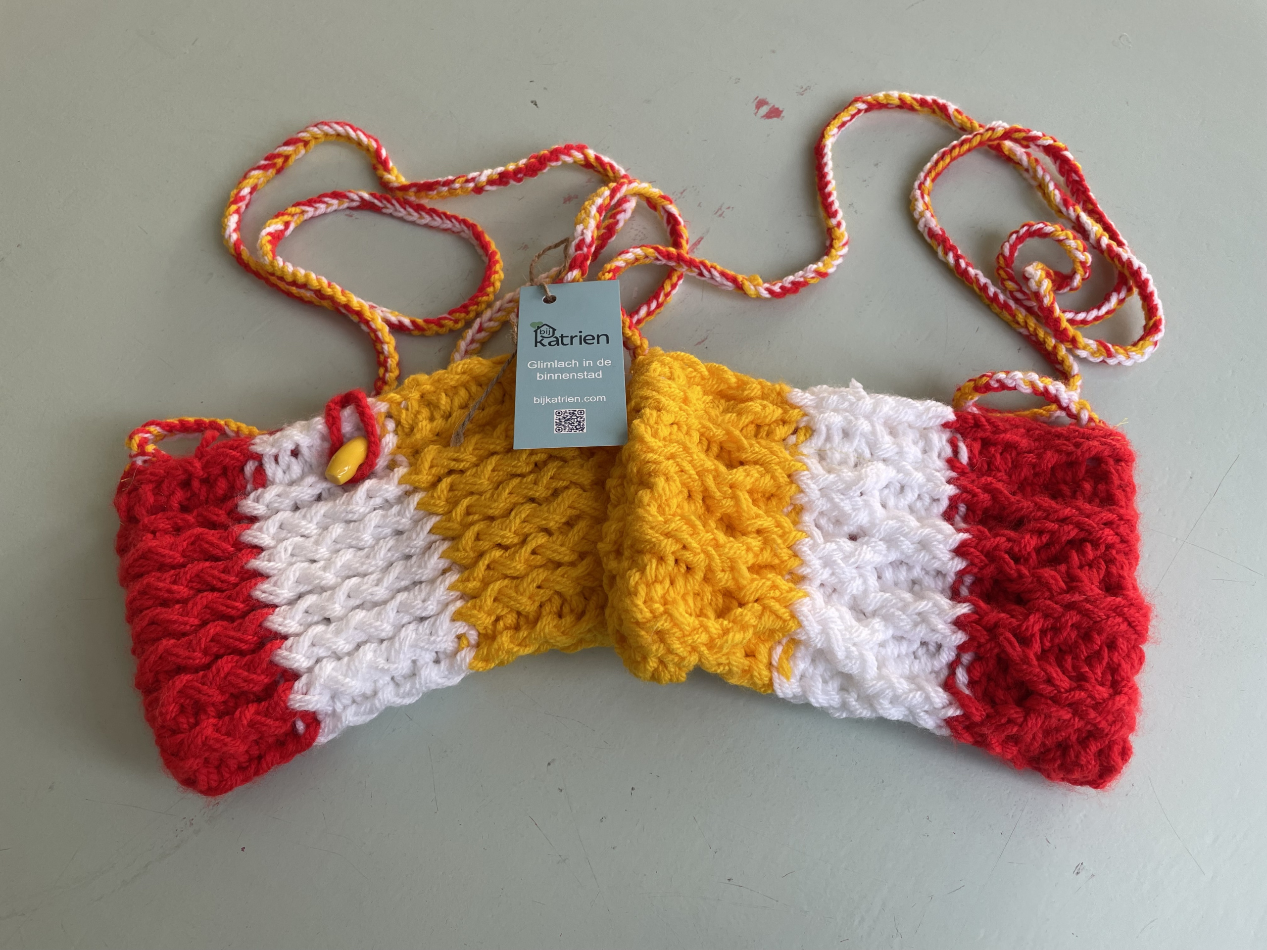 Prachtig handgemaakt tasje in de Oeteldonkse kleuren. Met voering en Klittenband.